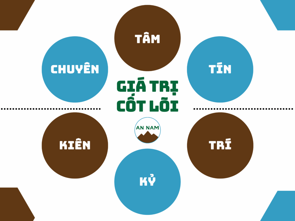 Sáu chữ vàng “Tâm – Tín – Trí – Kỷ – Kiên – Chuyên” là những giá trị cốt lõi đặc biệt mà AN NAM luôn xây dựng và gìn giữ. Đây không chỉ là những từ ngữ đơn giản, mà còn là triết lý và cam kết thể hiện trong mỗi hành động của chúng tôi.